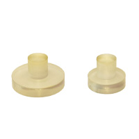 ウレタン丸棒50Φ×500mmより旋盤加工で長さ30mmに加工を行いました。ボール盤で、ゴム厚み30mmを10Φの貫通穴加工、ゴム外形50Φを10Φで通し加工行いました。